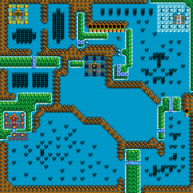 城周りおよび城右の土地に密に拠点を作って領土を拡大する。下の運河には手をださない。120日を過ぎたあたりで300程度のユニットを使ってヘッタちゃん領域と白をつなぎ、ヘッタちゃんが白へ流れるようにする。 |